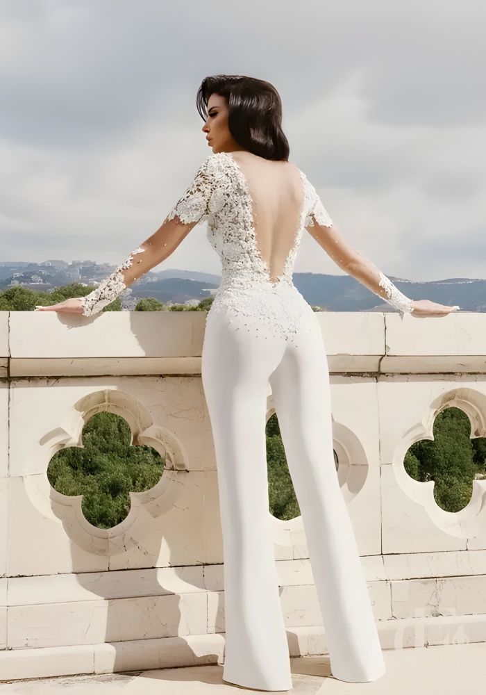 Combinaison mariée dentelle perlée : cérémonie inoubliable