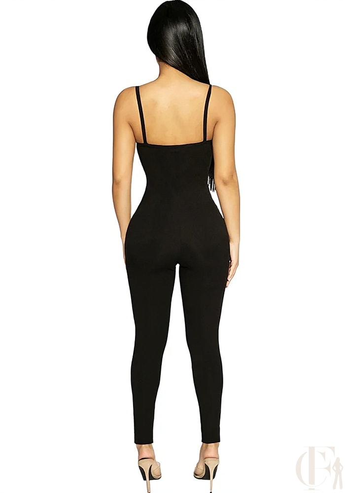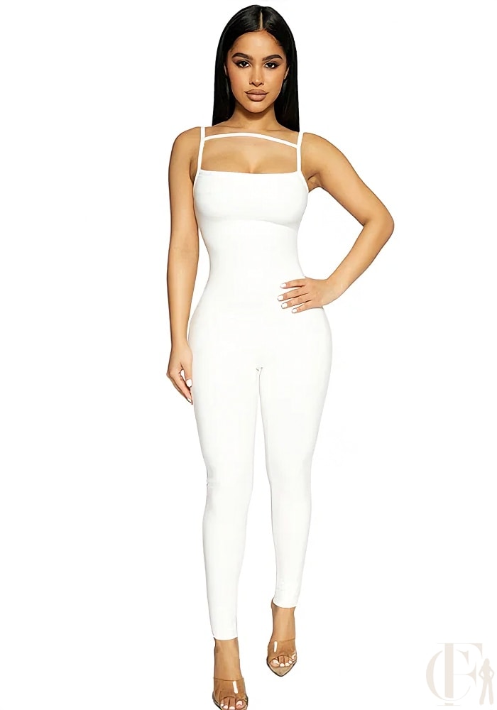 L’atout indéniable, c’est vraiment cette échancrure horizontale stratégique qui vient découper le buste en deux parties bien distinctes. On parle d’une bande fine, disons environ 3 cm, qui encadre la poitrine et dessine un décolleté plongeant franchement structurant. Les bretelles fines ajustables (pile 1,5 cm, pour être précise) partent depuis les épaules en lignes parallèles. Ça maintient l’ensemble sans jamais alourdir la silhouette, c’est appréciable. Le haut, lui, adopte une coupe bustier moulante qui épouse parfaitement le buste et la taille – on dirait du jersey stretch opaque, cette fameuse matière seconde peau qui sculpte sans jamais comprimer. Il faut dire que le pantalon fuseau descend en ligne vraiment continue jusqu’aux chevilles, sans aucune rupture visuelle, ce qui allonge clairement la jambe. Côté dos, ça reste sobre avec ces mêmes bretelles qui rejoignent une ligne droite classique, sans fioritures inutiles. Niveau coloris, deux options s’offrent à vous : le noir mat qui affiche un rendu sculptant maximal, et le blanc lumineux qui joue plutôt sur les contrastes de volumes. La finition demeure lisse, sans brillance excessive ni détails superflus – pas de poches apparentes, pas de ceinture, juste cette ligne minimaliste qui convient parfaitement aux événements soirée chic où la silhouette se suffit à elle-même. Les coutures invisibles renforcent cet aspect épuré recherché pour un look glamour et ajusté. Mon conseil perso : avec des escarpins nude et des bijoux dorés minimalistes, c’est vraiment le top pour une soirée réussie.