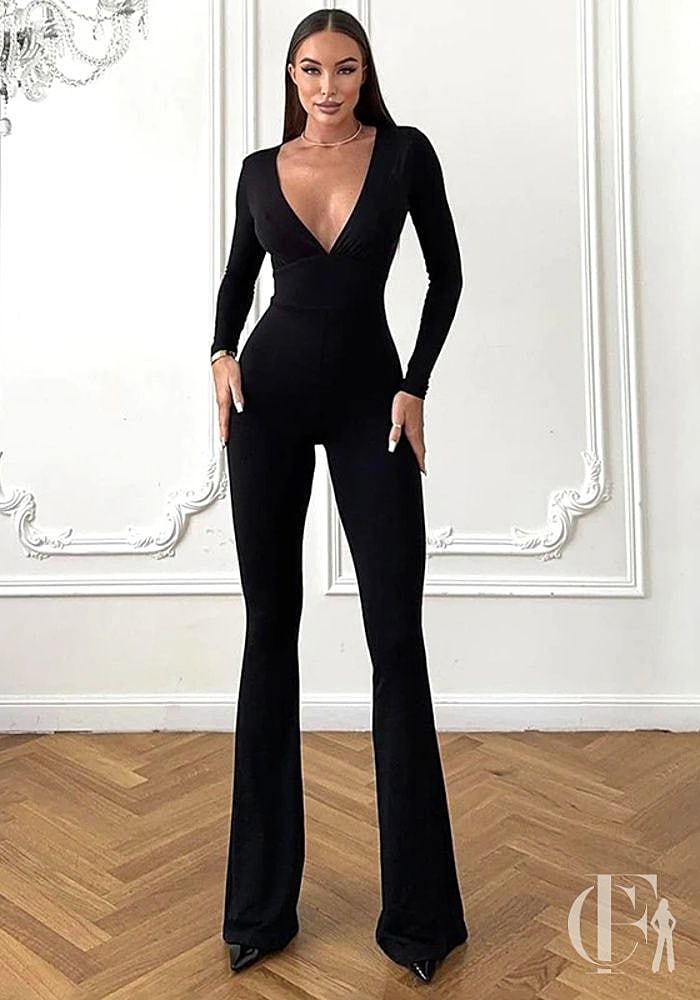 Combinaison palazzo noire col V : soirée élégante